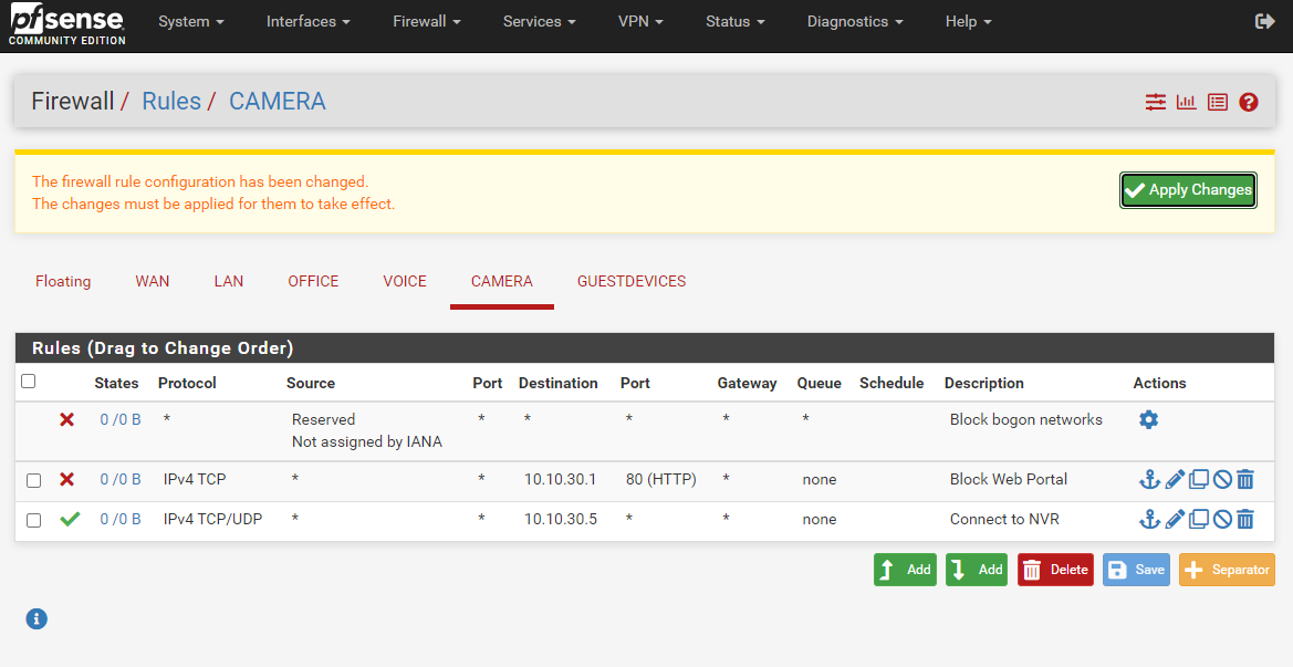 Can only access NVR (Network Videos Recorder) and other cameras. Cannot access other networks or administer pfSense appliance.