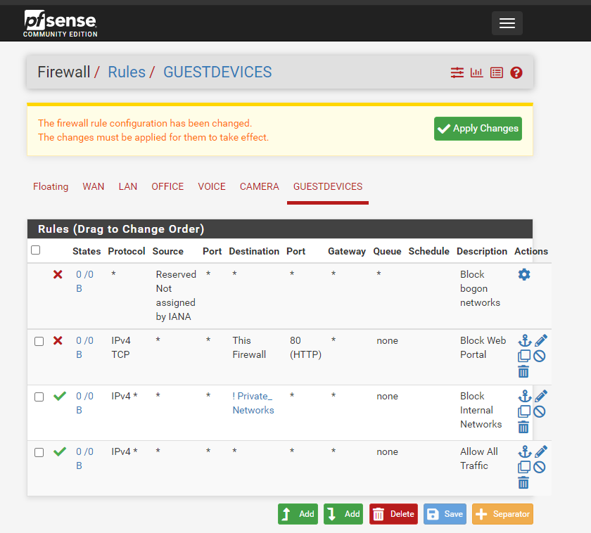 No access to other internal networks. Cannot access other networks or administer pfSense appliance. Can only access WAN.